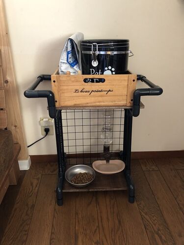 猫のエサ台と水飲み場とエサのストックの置き場所を1か所にまとめたかったので、塩ビパイプで男前えさ台を作ってみたよ。 購入物品 ホームセンター ・塩ビパイプ16mm 2m 482円 ・エルボ(L字) 20個 1600円 ・チーズ(T字) 4個 368円 ・エンドキャップ …
