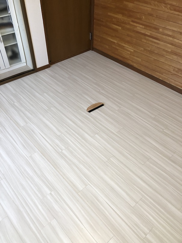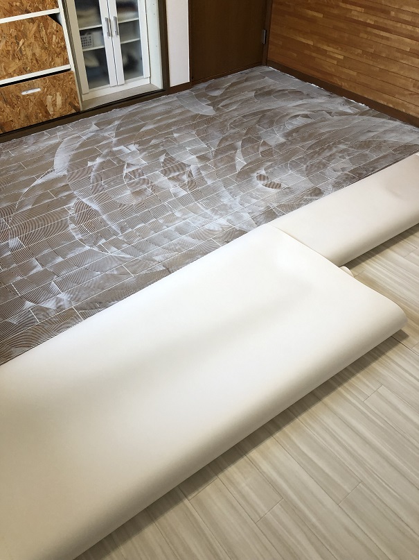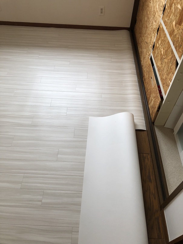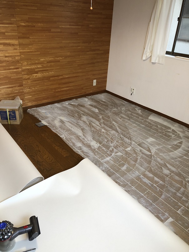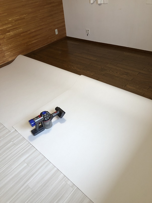 (クッションフロアの裏にはグラスウールが含まれていて肌がチクチクするので、肌が直接触れない方が良いです)