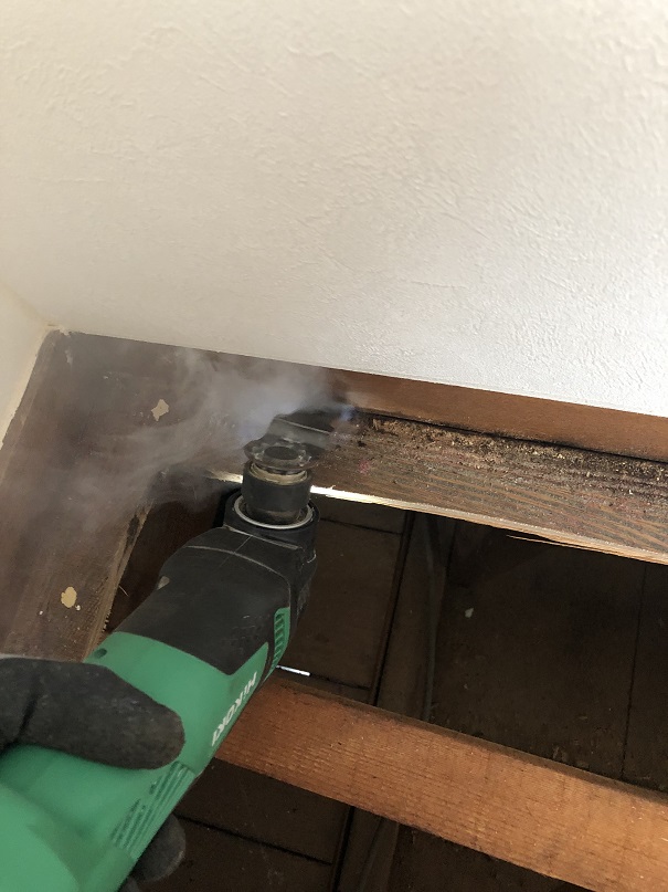 1.既存の床板を電ノコ・マルチツールで切り取る