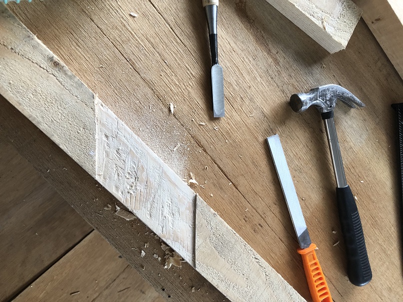 根太が高い部分は角材を削り高さを合わせる