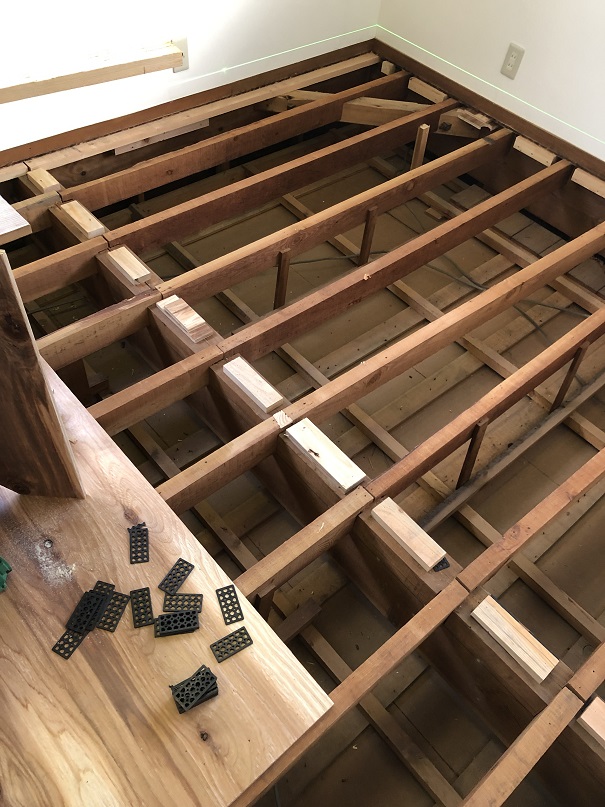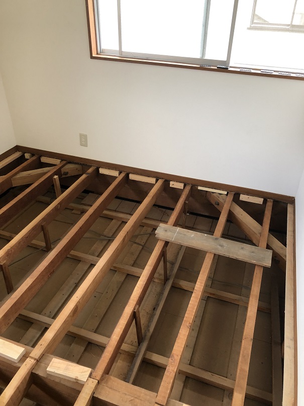 2.新しい床を置けるように、根太を取り付ける