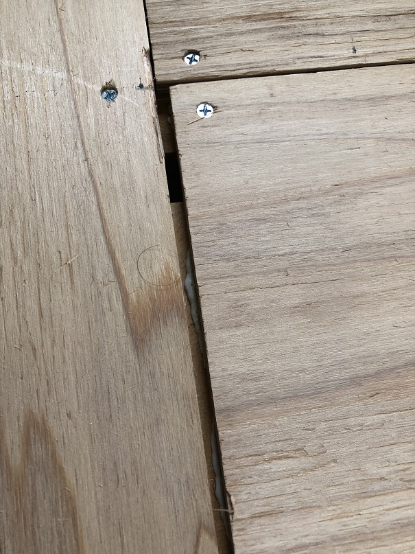 合板の端が根太に乗っていないと、たわみができて軋みが発生してしまいます