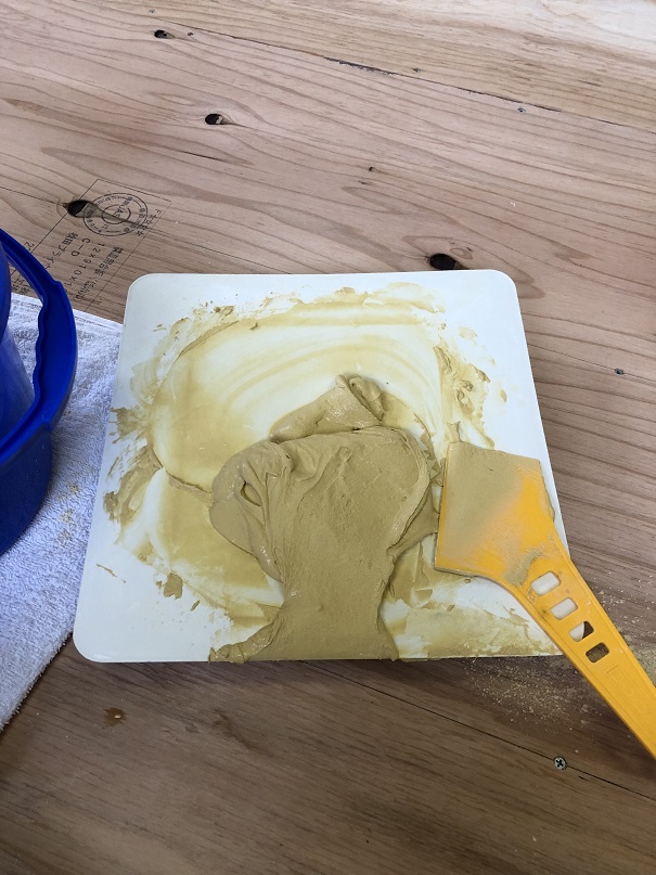 ビスや合板の継ぎ目・節などをパテ埋め