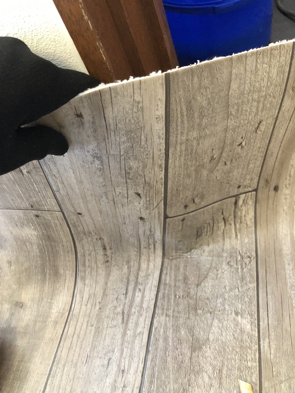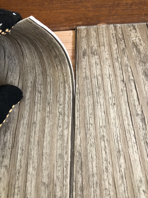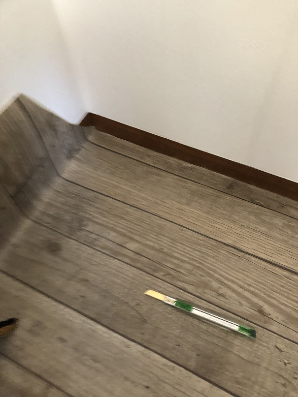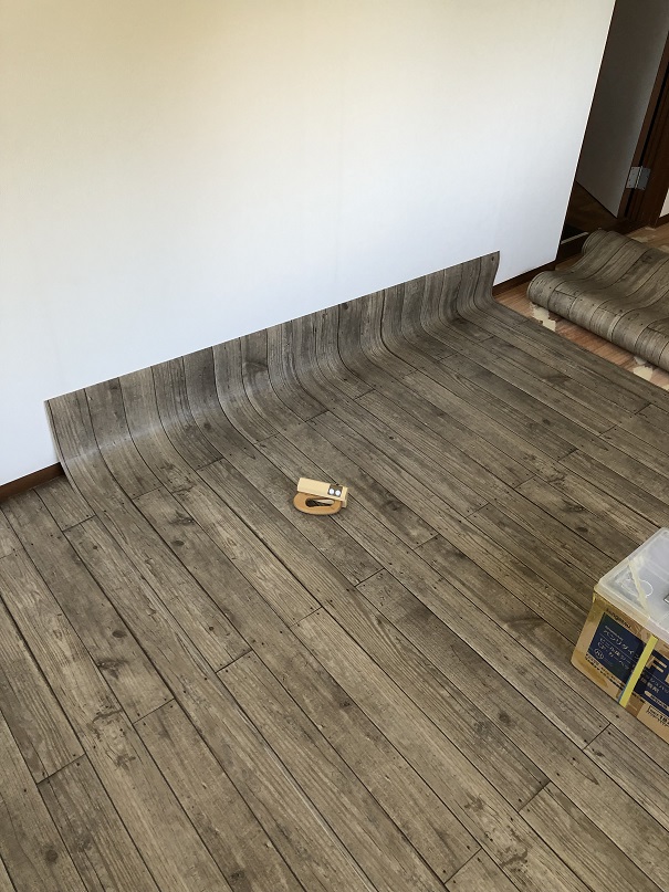 中に空気が入らないように端からクッションフロアを押し込むように貼ります