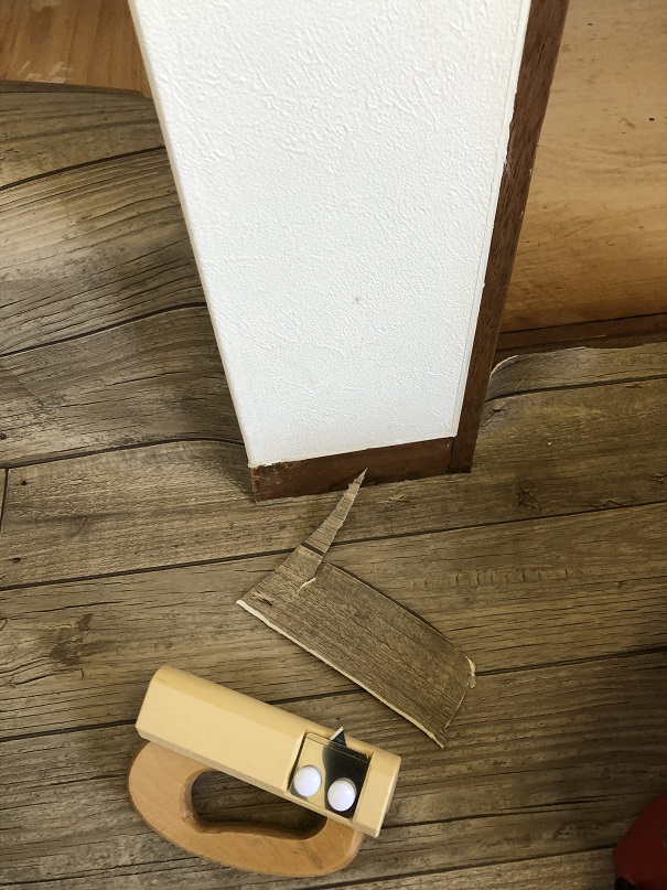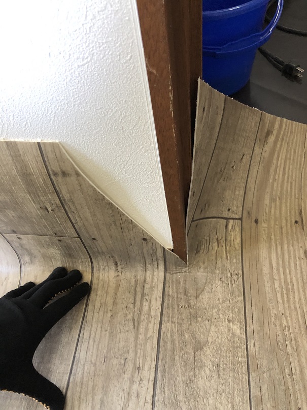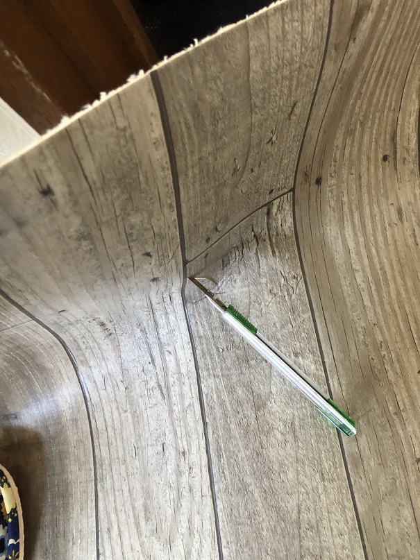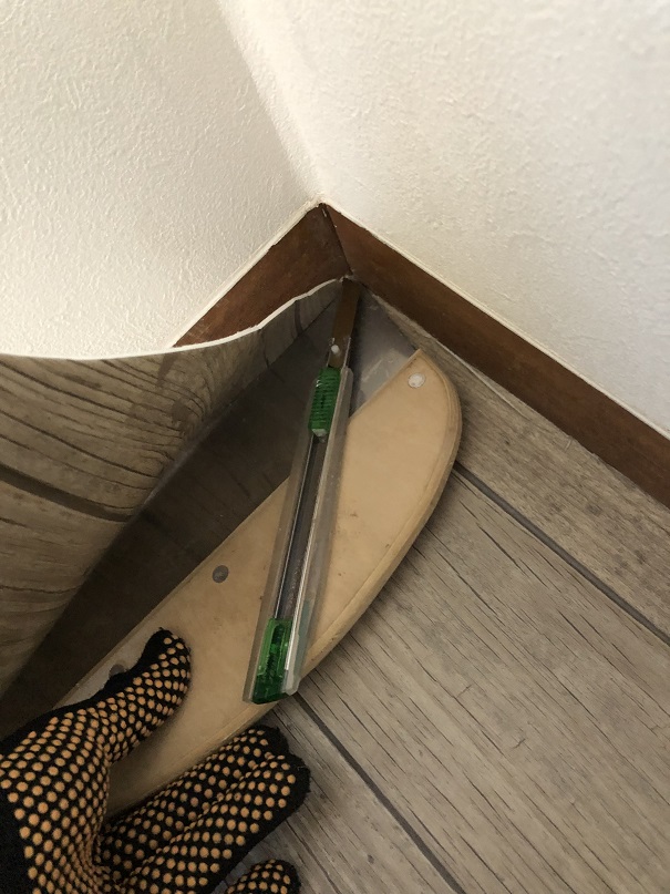 壁際をクッションフロアカッターでカット