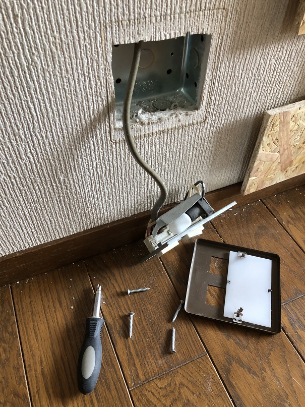 4.合板を壁に固定後コンセントを外した手順で固定する